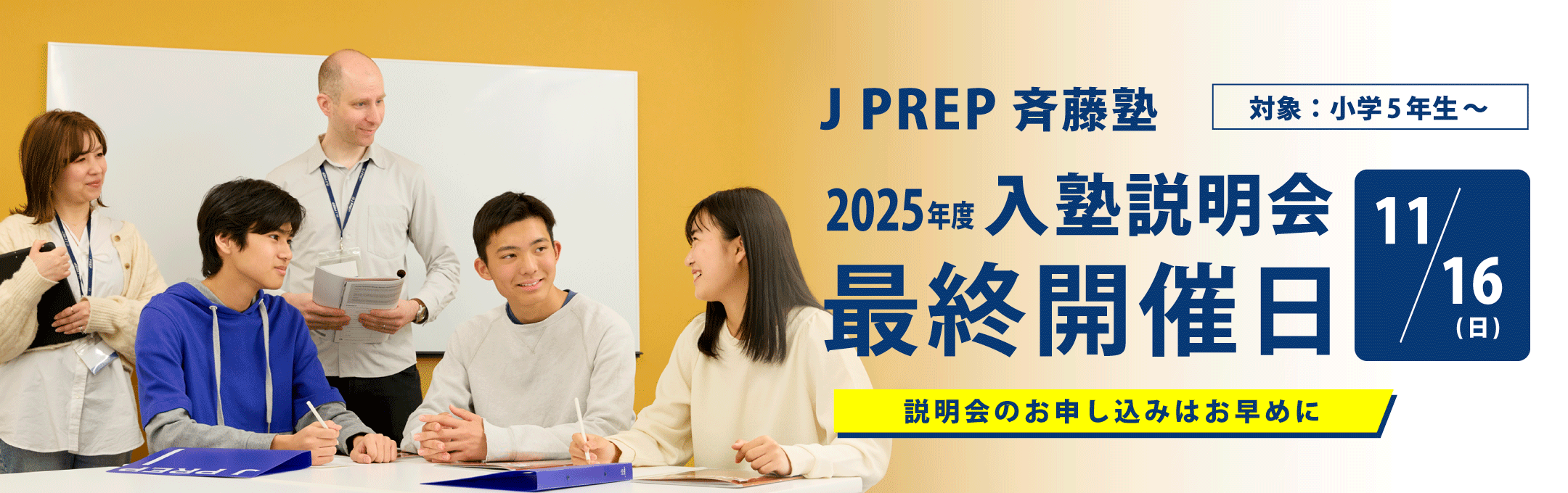 J PREP の教育方針、学習カリキュラムのほか、入塾手続きについてご説明します。
