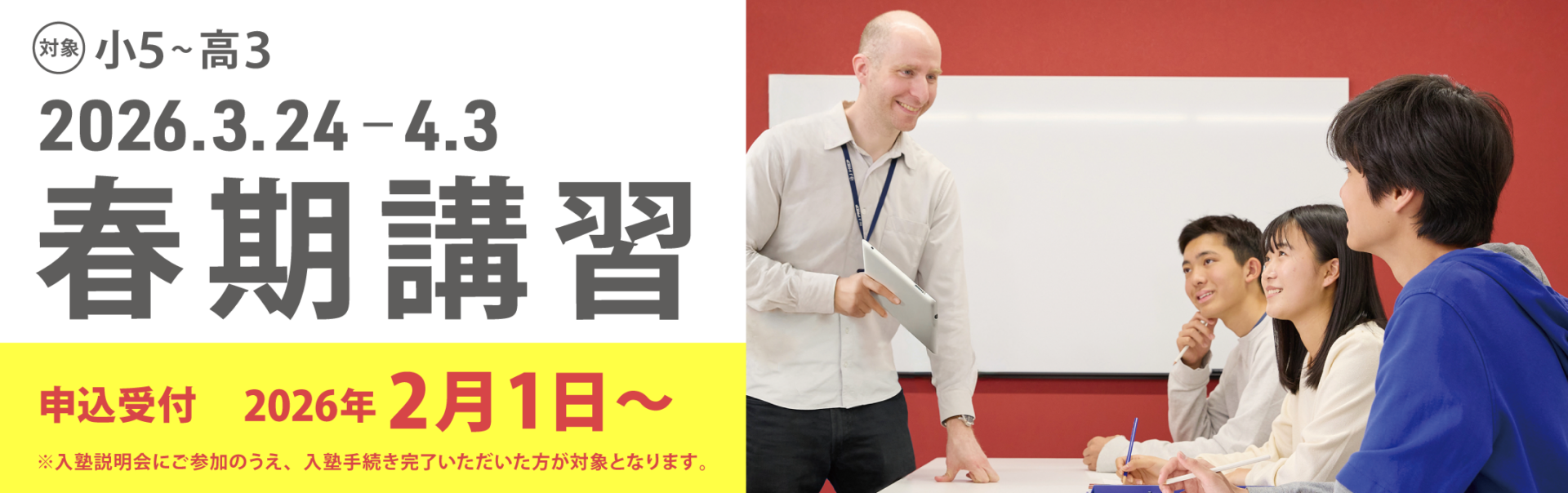 J PREP 2026 春期講習は、入塾説明会にご参加のうえ、入塾手続き完了いただいた方が対象となります。
