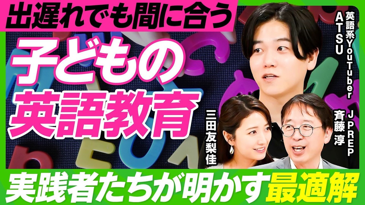 元・フジテレビアナウンサーの三田友梨佳さんがMCを務めるPIVOT内のトークコンテンツ『ビジネス虎の巻』で、英語系YouTuber(英語YouTubeチャンネル Atsueigo 運営)のATSUさんと共に「英語学習は早ければ早いほど良いのか」、「子どもが英語を嫌いにならないためにはどうすればよいか」、「臨界期や敏感期でアプローチ方法は変わるのか」、「年齢を重ねてから英語学習を始める場合はどうするべきか」といった「子どもの英語教育」に関する疑問に対してお話しています。