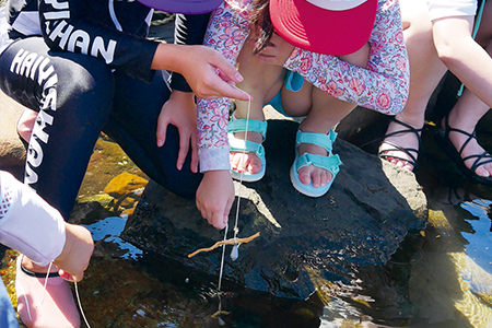 広大な自然の中で、宝探しや水遊び、サイエンス学習、キャンプファイヤーなど、学んできた英語を全身で覚える機会を設けています。