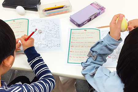 英語に対して、日本語を介さず身体を動かす活動を通じ、英語脳を作る、脳に英語の回路を作る全身反応教授法(Total Physical Response)を活用し、年間を通したさまざまな活動やイベントで楽しく手や全身を動かしながら、英語を使いこなす能力を育てていきます。