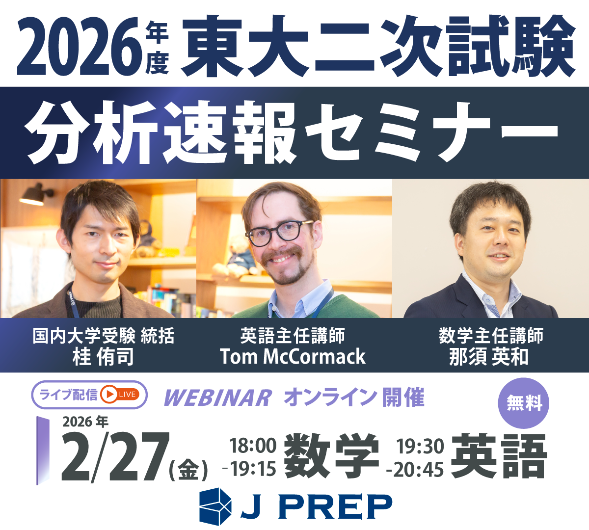 2026年2月25日(水)・26日(木)に実施される東京大学二次試験の英語・数学問題を解析・解答した上で、試験日翌日の27日(金) 18:00から、最新の英語・数学試験問題分析を解説と共に速報。