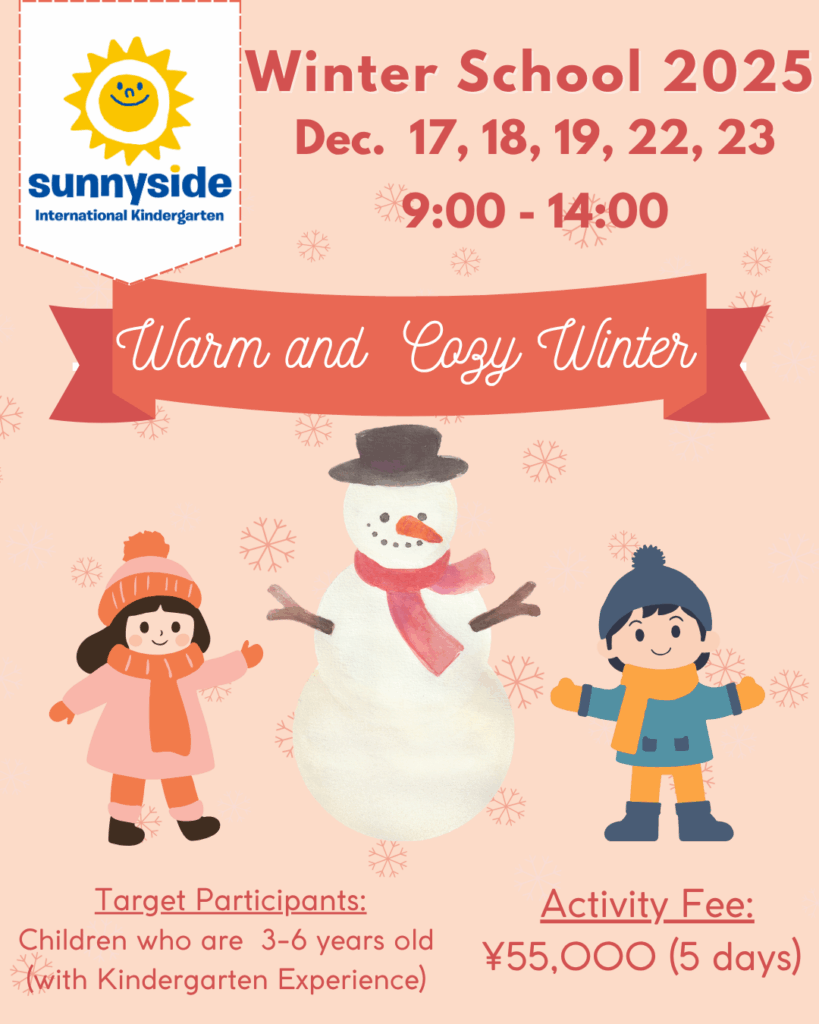 自由が丘にあるインターナショナルスクール、サニーサイド・インターナショナル・キンダーガーテンでは、今年もウインタークールを開催します!